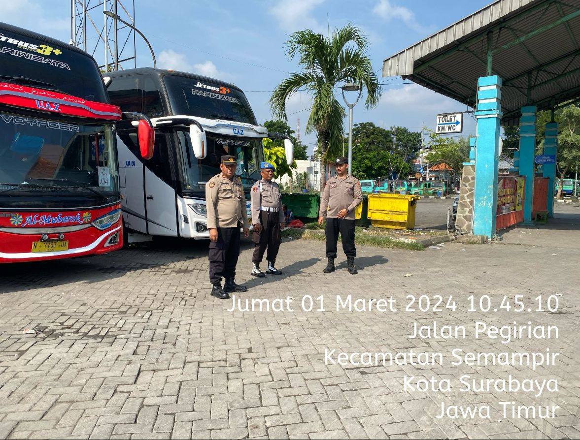 Seputarperak.com – Polsek Semampir, Polres Pelabuhan Tanjung Perak, Polda Jawa Timur menjalankan patroli di Terminal Religi Ampel pada Jumat, 1 Maret 2024.